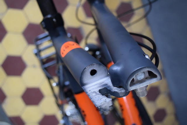 O tubo encaixa um no outro através de um sistema de varios dentes. Sobre a sua manutenção e durabilidade, é importante lembrar que esta bicicleta é mais vocacionada para quem não precisa de a dobrar todos os dias, apenas de vez em quando (colocar num taxi, apanhar um autocarro, etc) ou para viagens grandes, como por exemplo fazer Troia-Algarve e voltar de autocarro.